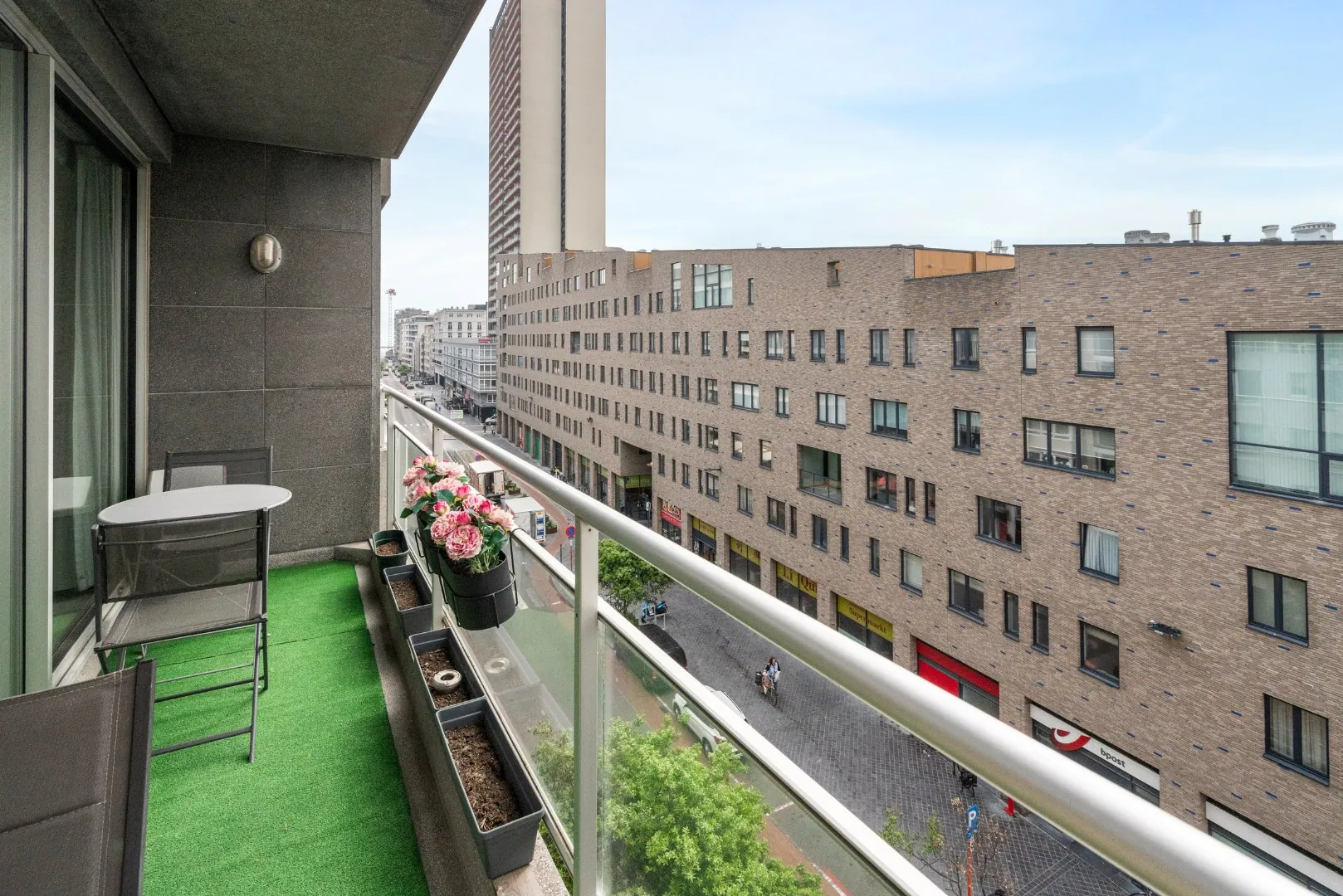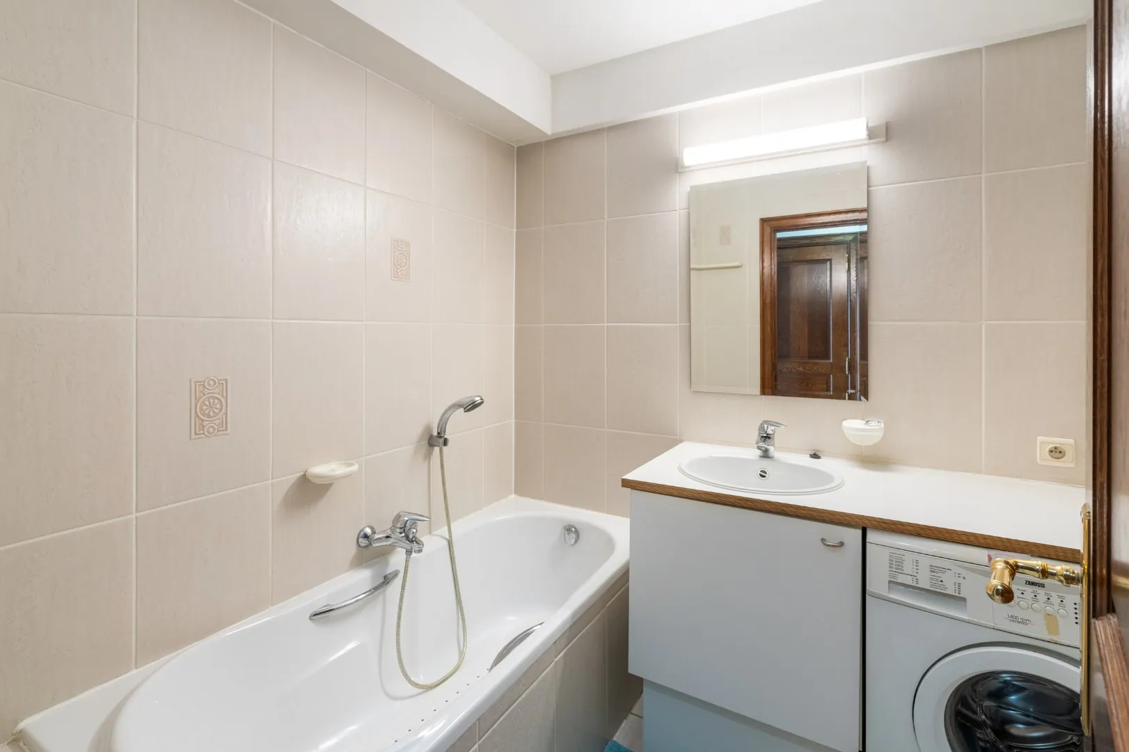 L'appartement est situé au 5ème étage et se compose de : séjour avec terrasse (ensoleillé jusqu'à 15h00), cuisine semi-ouverte avec débarras, 2 chambres à coucher donnant sur la terrasse arrière (ensoleillé à partir de +/-15h30) dont 1 avec salle de douche, salle de bain avec baignoire, toilette séparée.