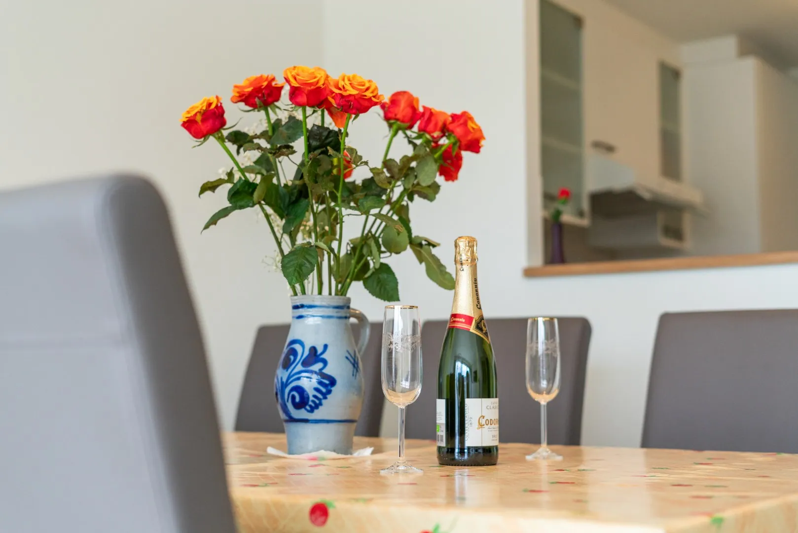 Wifi - Internet TV - radio - lave-linge - étendoir - fer à repasser - table à repasser - four - micro-ondes - plaque vitrocéramique - lave-vaisselle - grille-pain - réfrigérateur - congélateur - cafetière - cafetière Dolce Gusto - bouilloire - 1 x lit double 180cm avec couette 220 x 240 - lit superposé avec tiroir (3 matelas de 90cm) avec couettes (140 x 200) et oreillers - canapé-lit de 140 cm avec couettes (180 x 220) et oreillers - rideaux occultants - pas de tapis - salle de bain avec baignoire - salle de douche attenante à la chambre à coucher avec lits superposés - sèche-cheveux - toilette séparée - chaises de patio et - table - max. table - max. 5 personnes - ascenseur -- non-fumeur - animaux non admis.