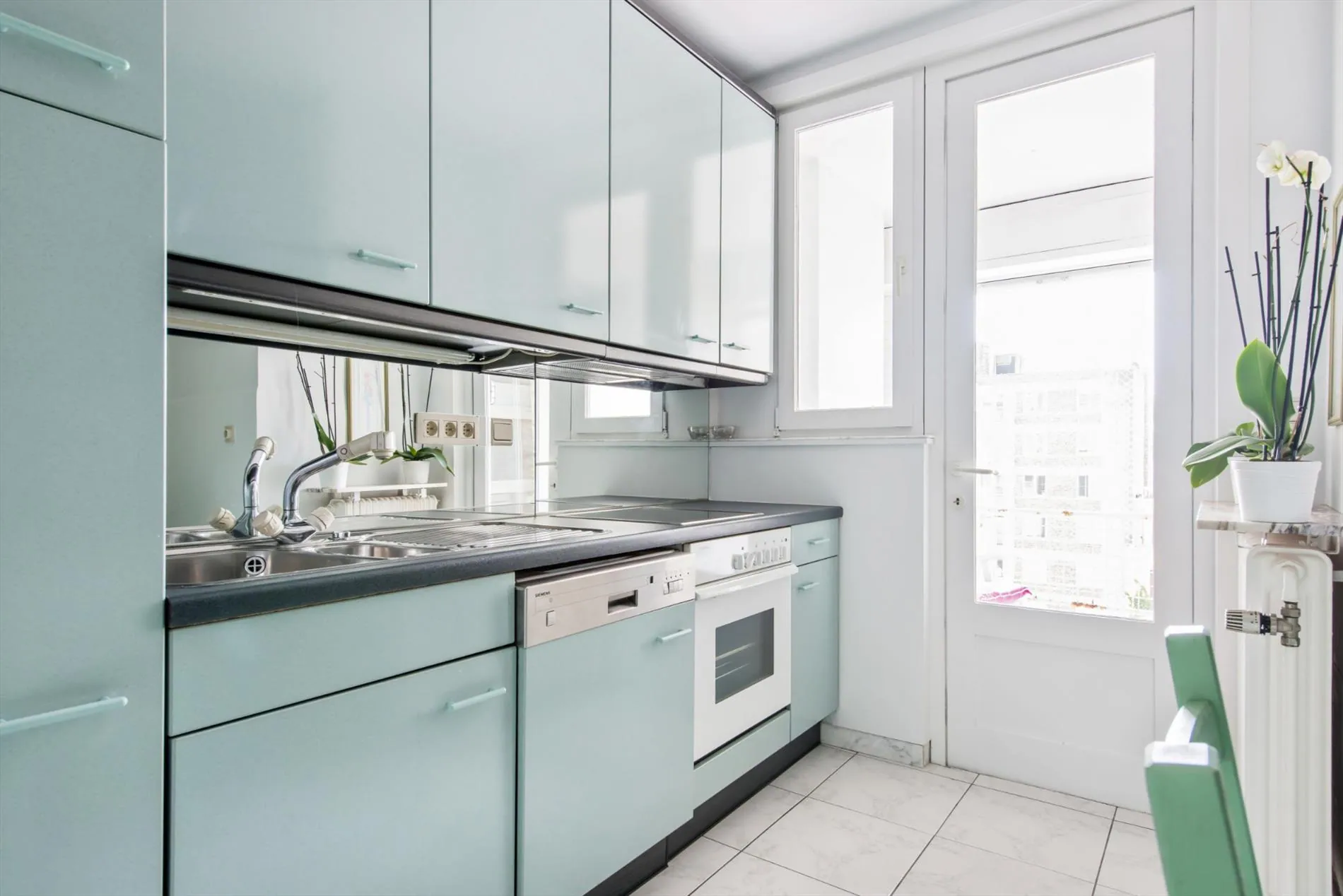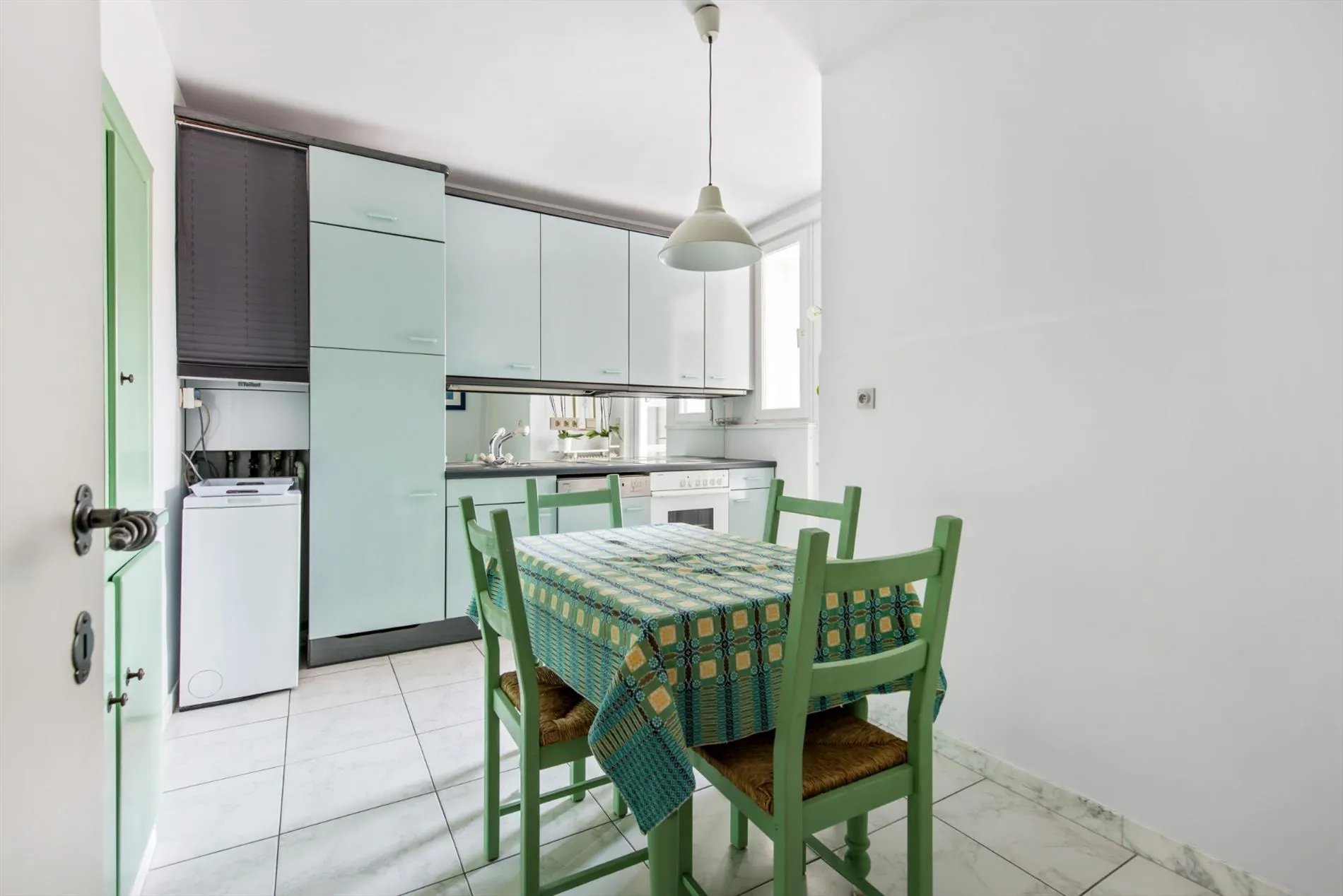 | Cuisine | Plaque vitrocéramique, Combi four/micro-ondes, Lave-Vaisselle, Réfrigérateur, Compartiment congélateur dans le réfrigérateur, Cafetière, Carrelage |