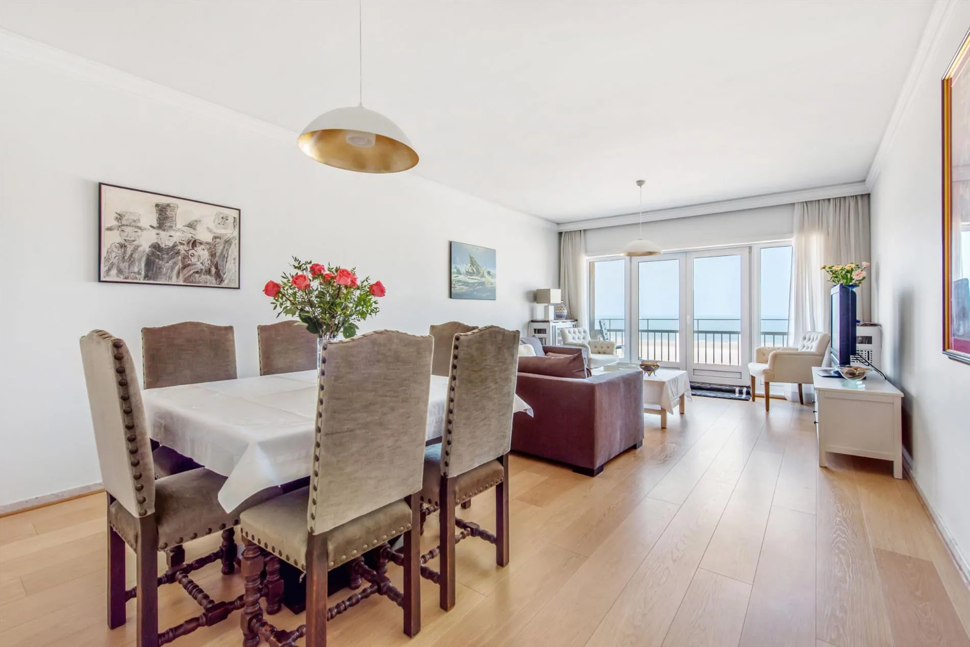 résidence SPLENDID - très bel appartement avac garage situé sur la digue ( entre le Casino et la villa royale) - 4ième étage - se composant de : grand hall, living spacieux avec petite terrasse et vue splendide sur mer, cuisine installée avec appareils et terrasse, hall de nuit, 2 chambres à coucher dont une avec vue sur mer et tv, salles de bains avec douche, toilette séparée.