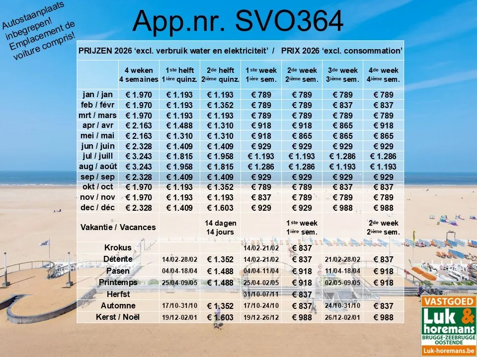 huurprijzen excl. waarborg en eindschoonmaak: zie 4de foto.