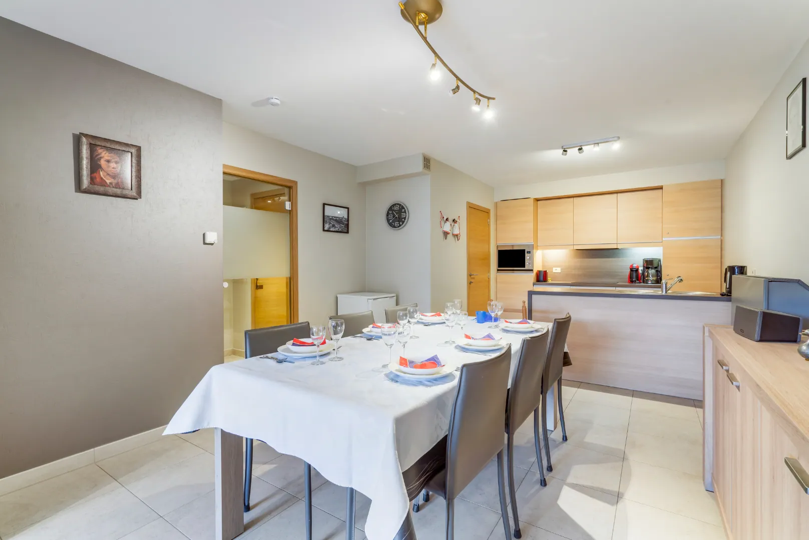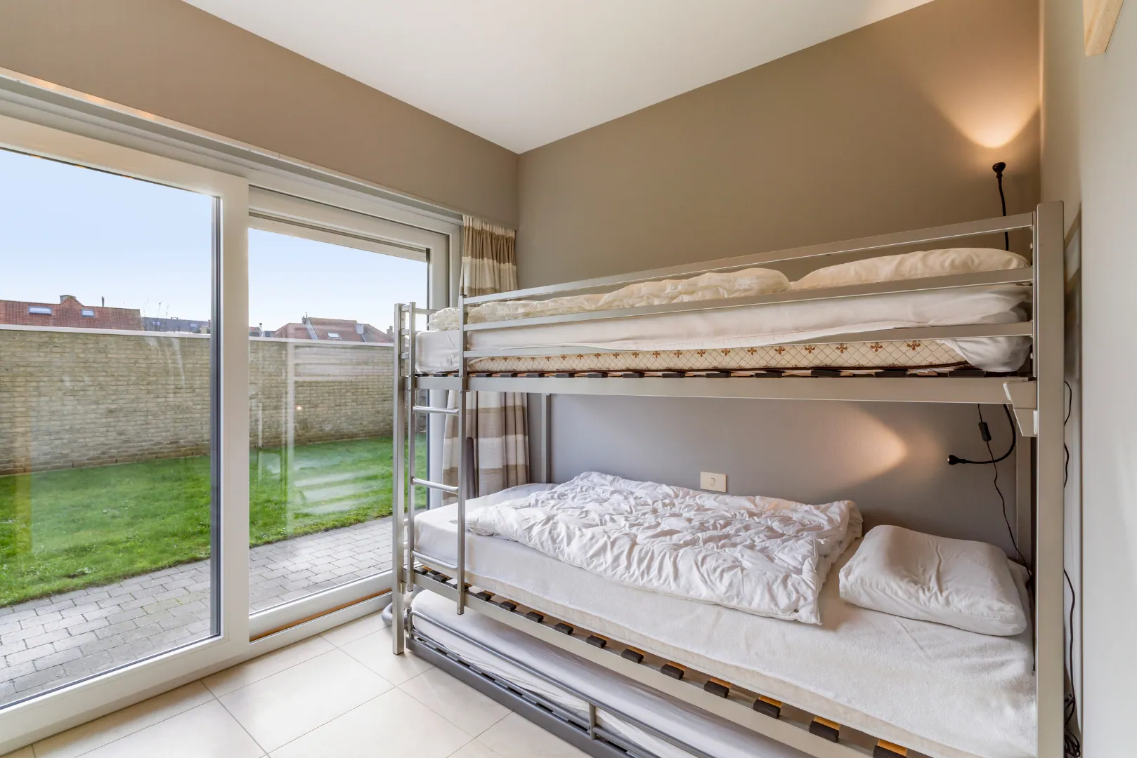 Luxueus en modern vakantie appartement met zonnige tuin en terras gelegen op het gelijkvloers in de Duinenstraat, op 300 meter van de zeedijk in Mariakerke. Deze vakantiewoning bestaat uit: Hal, ruime living met open keuken, berging, badkamer, 2 slaapkamers, apart toilet, en een tuin. Een aanrader voor een topvakantie aan de kust!