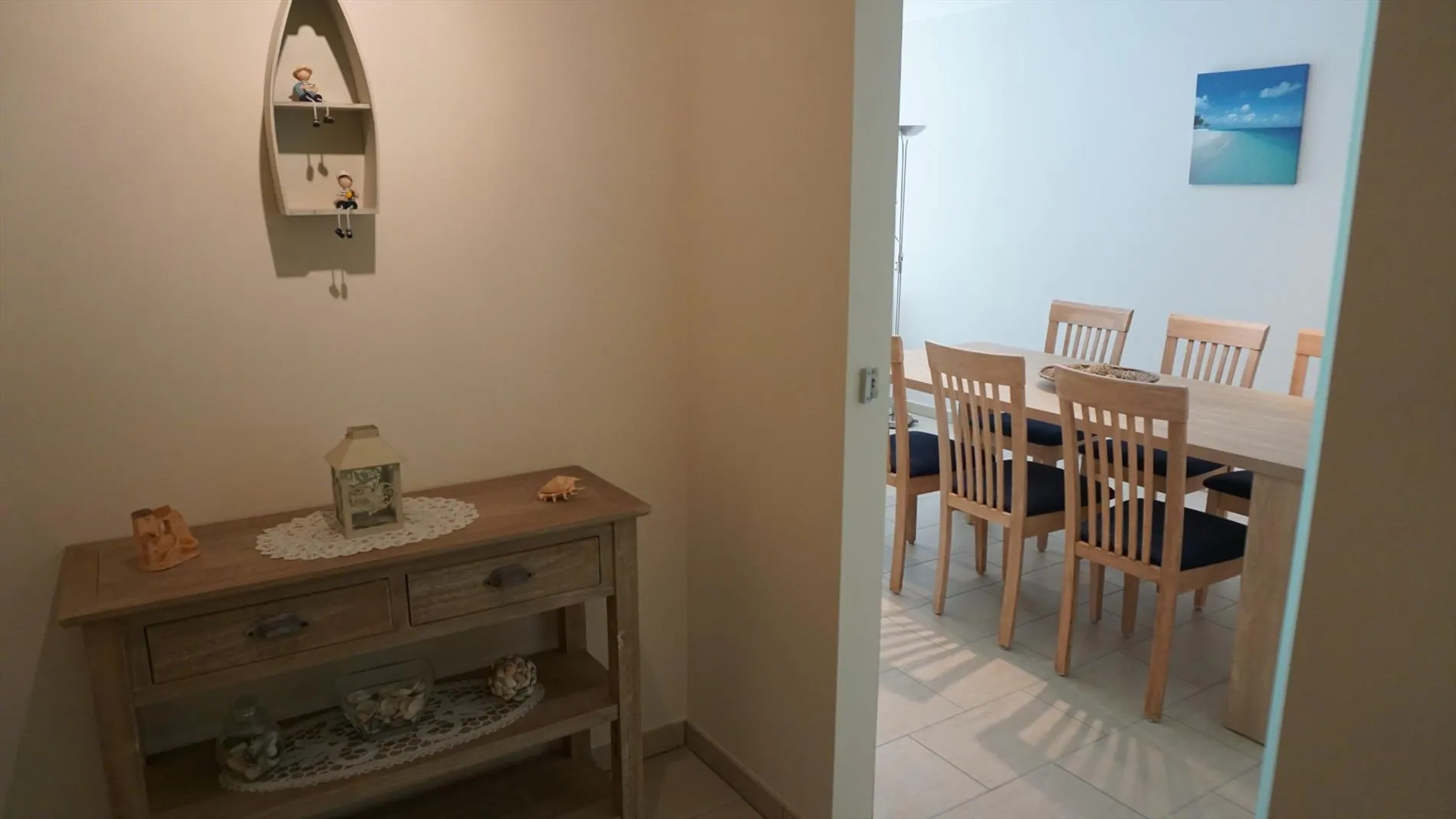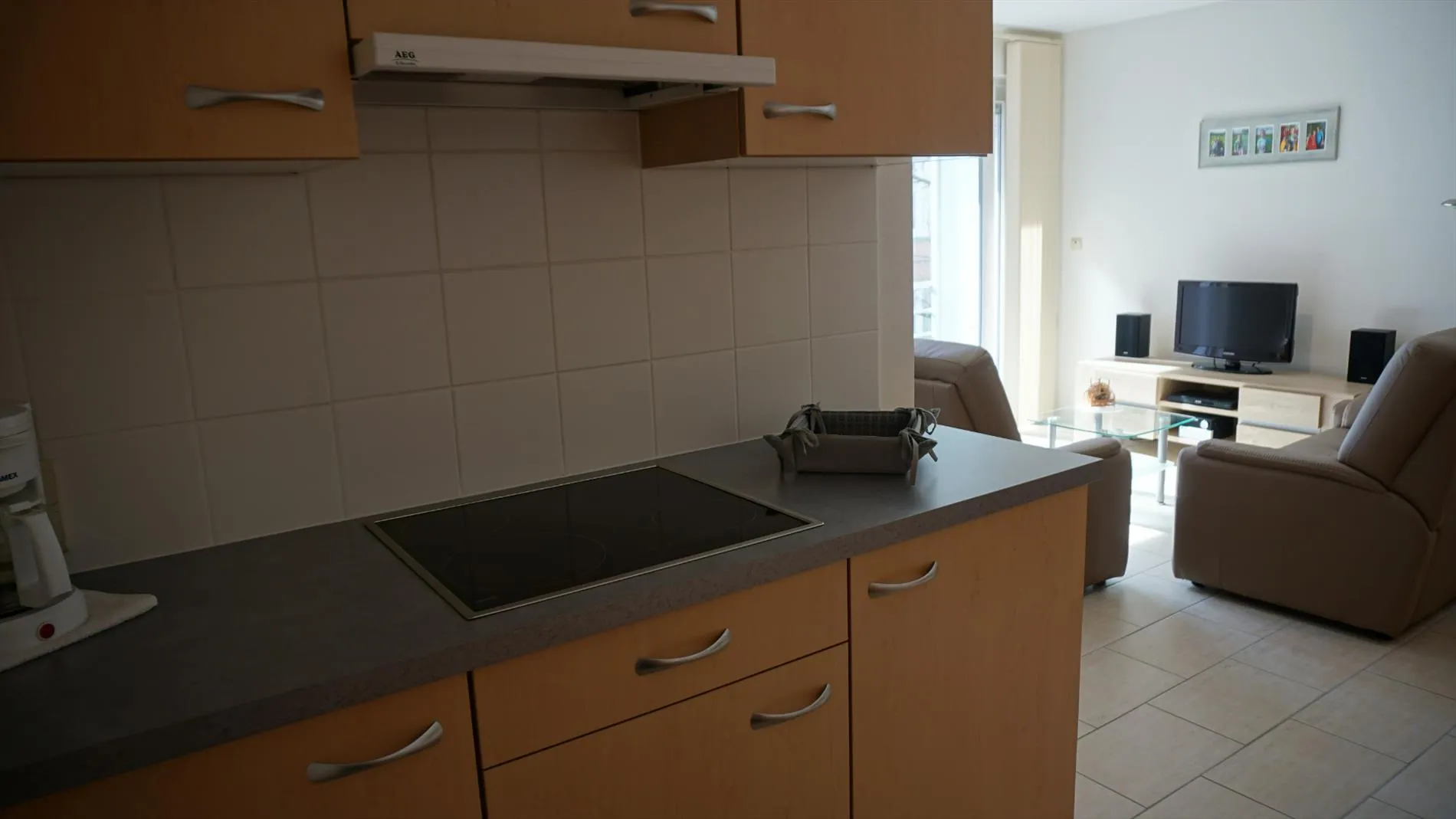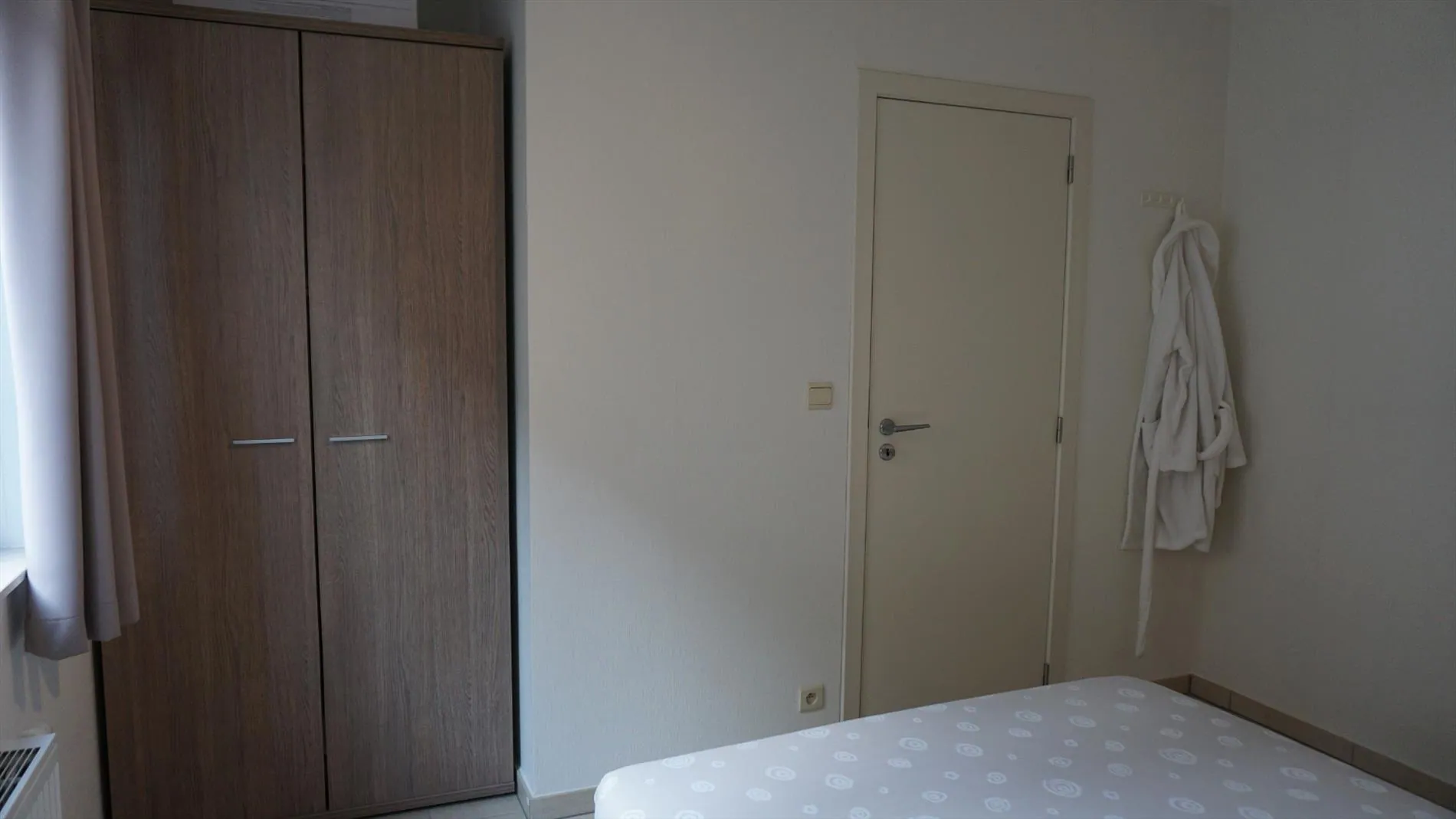 Het appartement omvat een inkomhal, living met gezellige zithoek, veel lichtinval en zonnig terras, eetplaats, volledig geïnstalleerde open keuken, slaapkamer (10,50 m²), badkamer met douche, en berging. Het appartement is prachtig afgewerkt en instapklaar. Er is een fietsenberging in het gebouw. Forfait algemene kosten bedraagt 50 euro per maand. Alle verbruik (water, elektriciteit en verwarming op aardgas) is individueel en privatief. Huisdieren zijn niet toegelaten. Zeer goede energiescore EPC 80 kWh/m²jaar energielabel A !