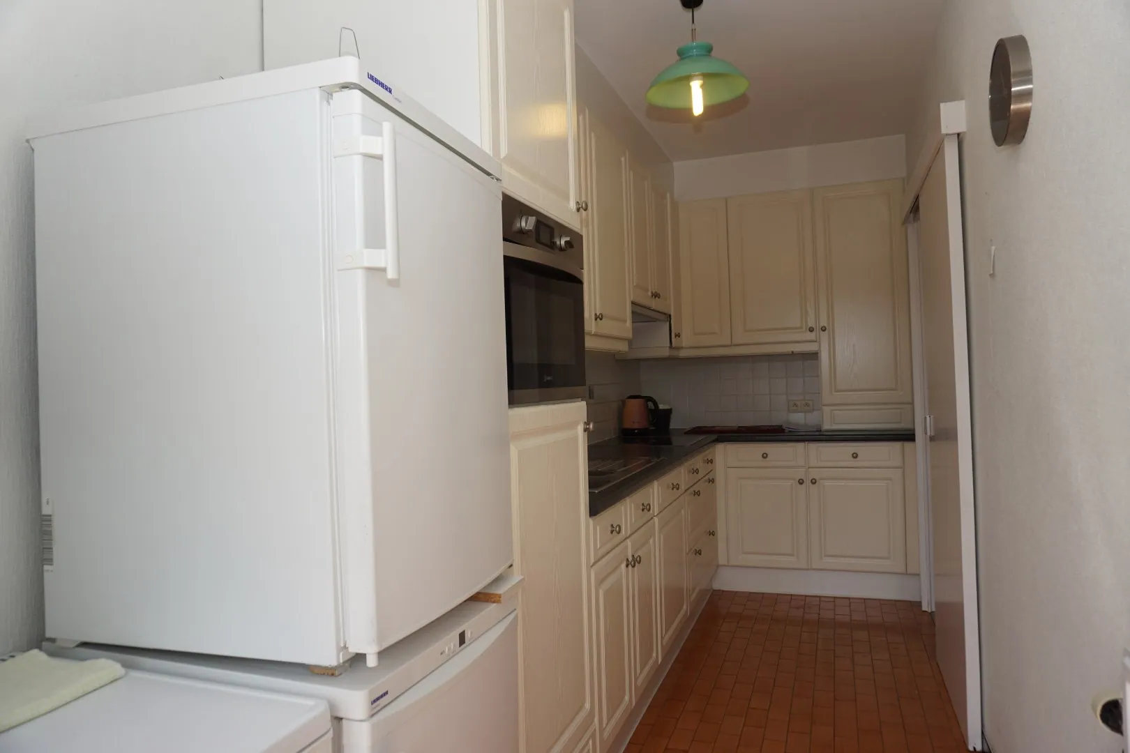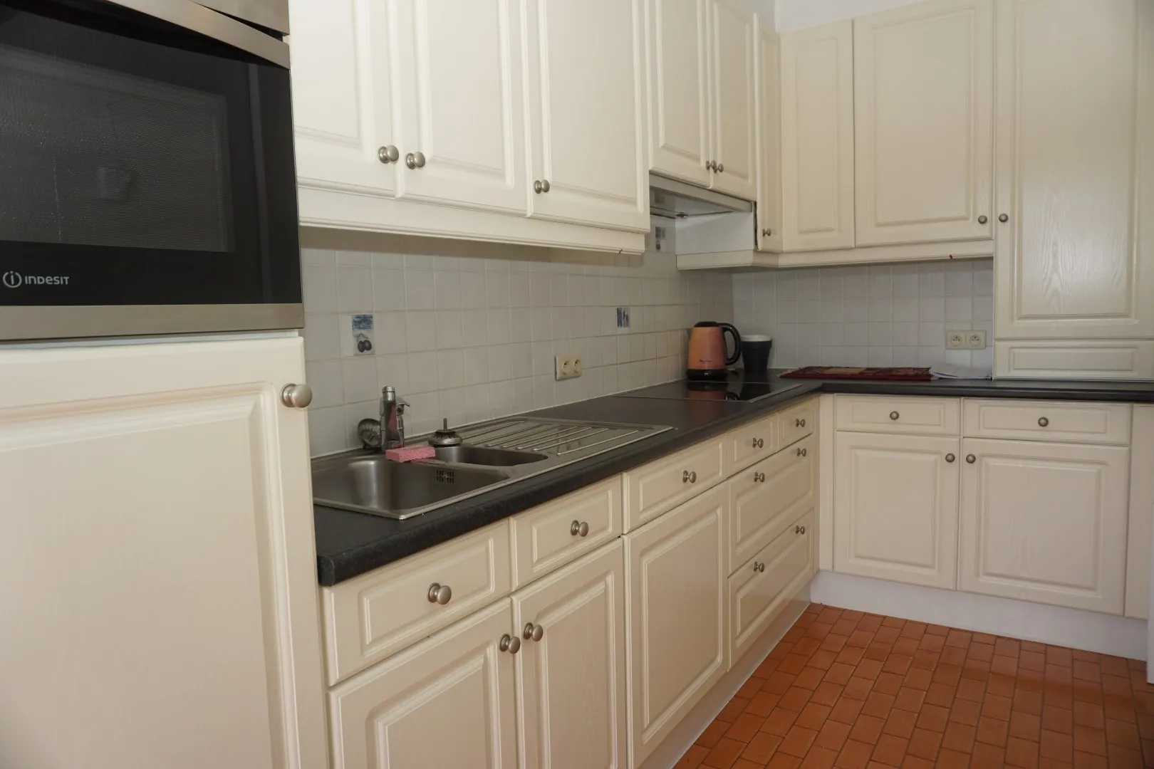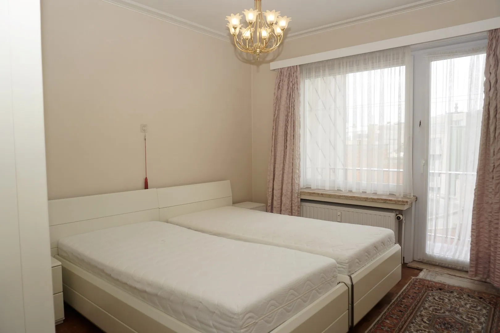 Het appartement bestaat uit: inkomhall met inbouwkasten, zonnige woonkamer, gesloten keuken met alle hedendaags comfort (2 frigo’s, diepvriezer, vaatwasser, microgolf, keramische kookplaat) en aansluitend een zonnig terrasje (zuidoost gericht) met zicht op het Leopold I-plein; apart toilet, nachthall, slaapkamer met terras en berging op het terras, tweede slaapkamer met uitklapbaar kastbed, badkamer met douche, lavabo, wasmachine en droogkast, kelder. Het appartement wordt gemeubeld verhuurd en is instapklaar!