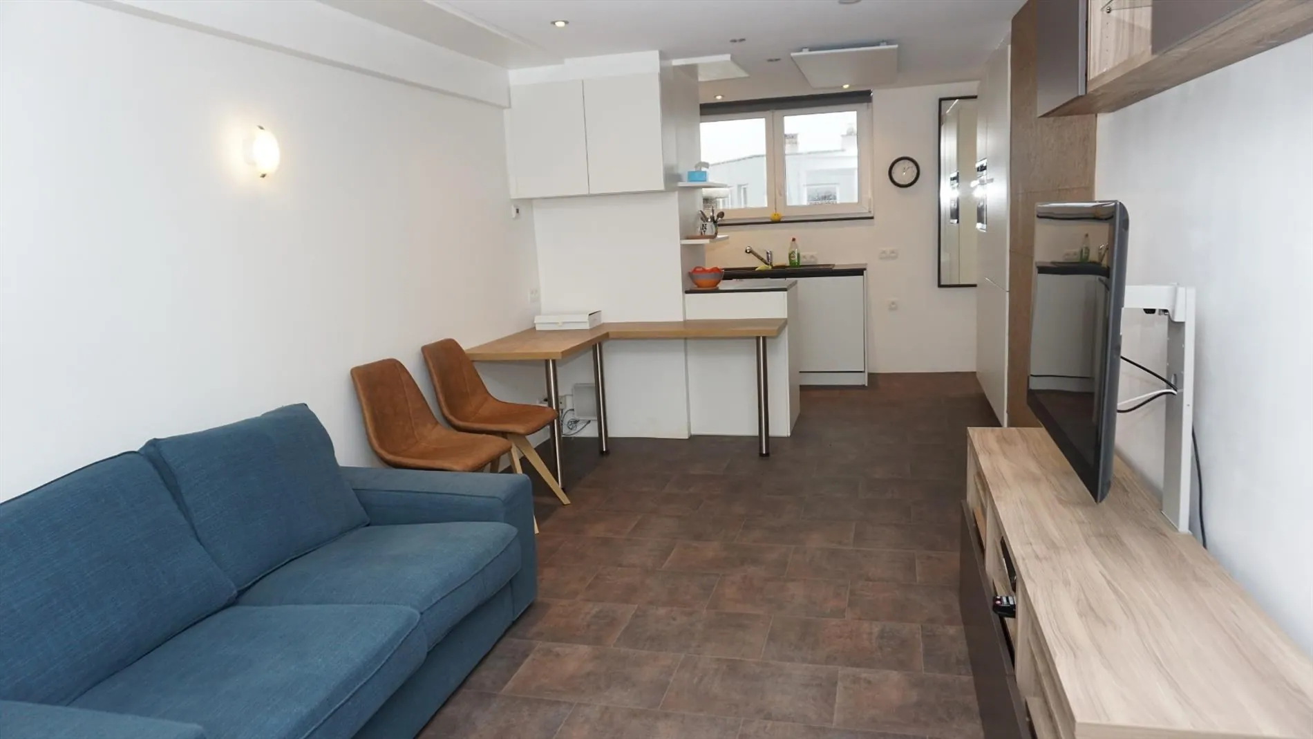 Het appartement omvat een inkomhal, volledig geïnstalleerde open keuken met vaatwasser, combi oven-microgolf, koelkast met vriesvak, en aansluiting voor een wasmachine. Aansluitend heeft het appartement een zeer ruim en zonnig terras. Verder de living met gezellige zithoek en eetplaats, veel lichtinval en nog een ruim terras, slaapkamer, badkamer met toilet en douche. Het appartement is modern afgewerkt, instapklaar en wordt gemeubeld verhuurd. De provisie van de algemene kosten bedraagt 40 euro per maand. Alle verbruik (water, elektriciteit) is individueel en privatief. Onmiddellijk beschikbaar.