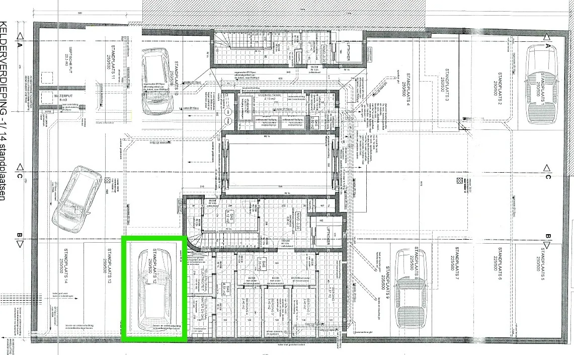 Autostaanplaats nummer 12 in de parking van residentie Virgo, het hoekgebouw op de Westlaan met de Zeedijk in Raversijde-Bad.