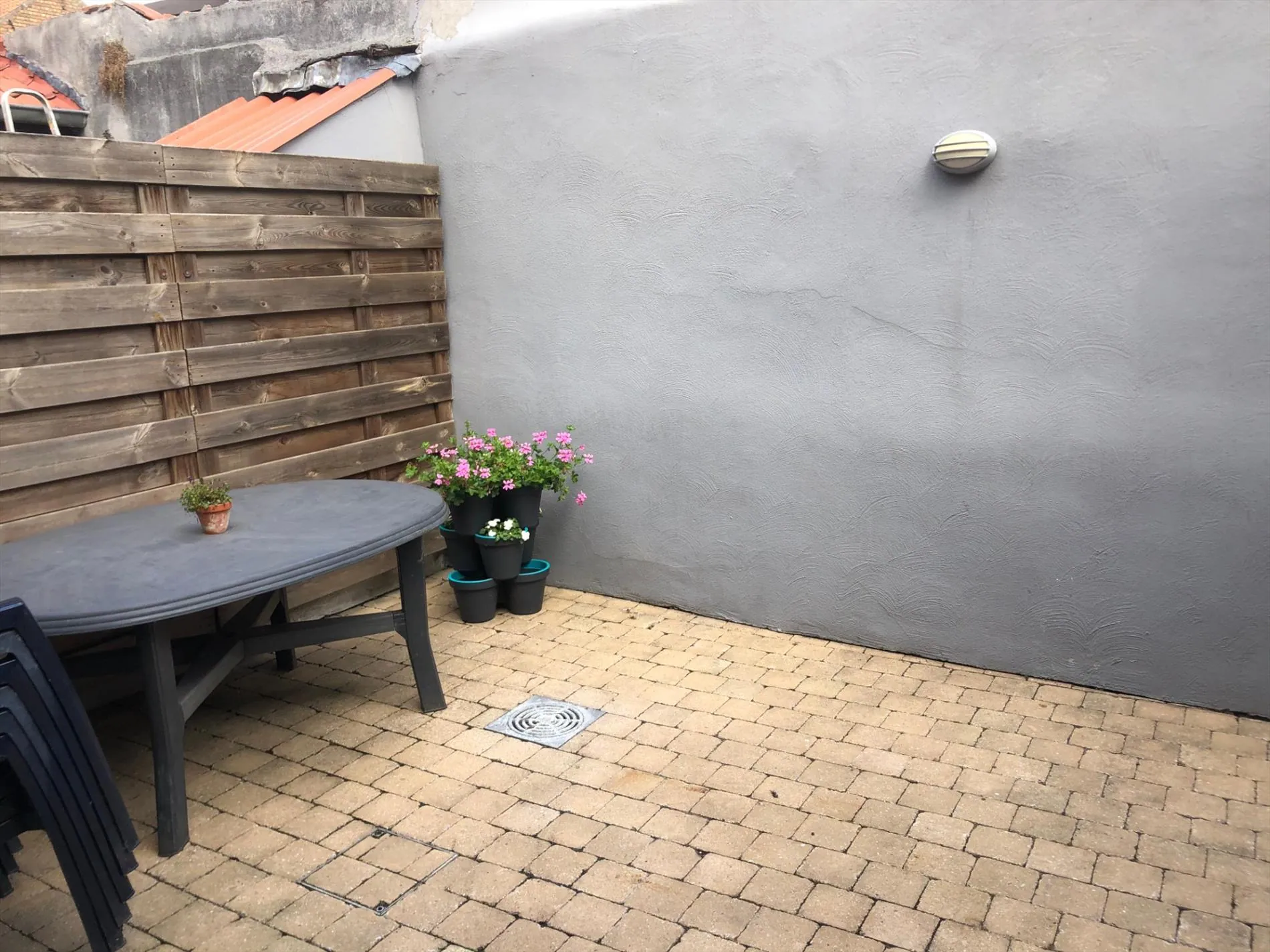 Instapklare rijwoning met inkomhall, gastentoilet, living en open, ingerichte keuken, ruim terras, slaapkamer, badkamer met ligbad, toilet en aansluiting voor wasmachine, ruime open zolderkamer. EPC: 245 kWh/m²