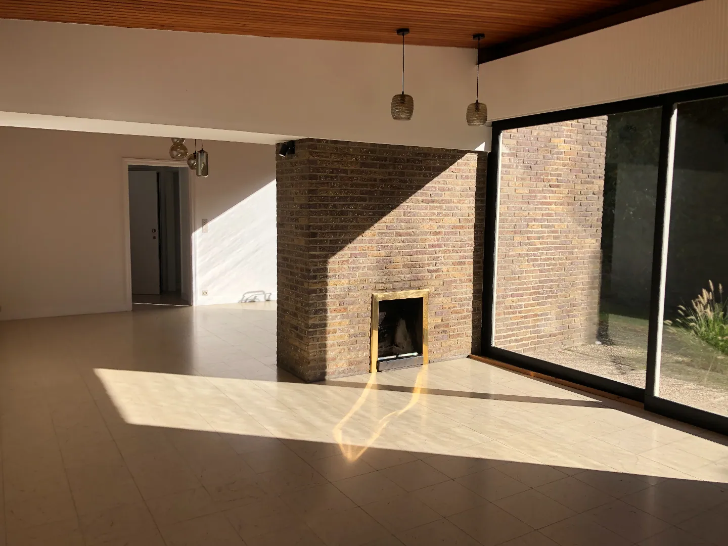 Deze instapklare lichtrijke woning bestaat uit inkom met apart toilet en vestiaire, ruime leefruimte met open haard, heel veel lichtinval door de grote raampartijen en met zicht op de mooie tuin, nieuw ingerichte keuken, 3 slaapkamers, 2 badkamers waarvan 1 met ligbad en de andere met een douche en toilet, garage met oprit en een zonnige tuin met terras en overdekte berging. Woning werd recent volledig vernieuwd, nieuwe ATAG ketel.