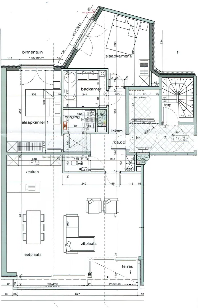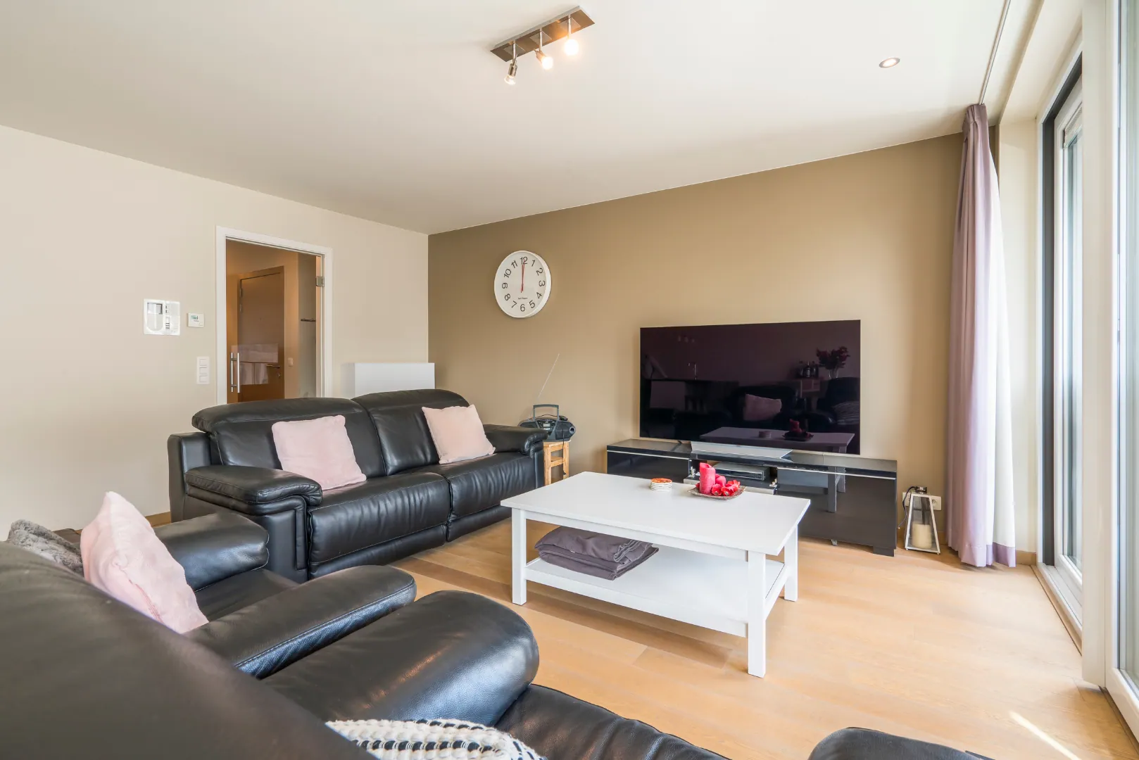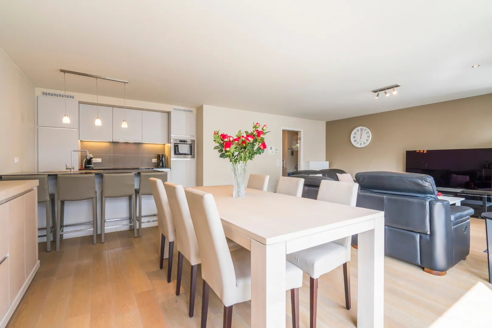 Het appartement is instapklaar en omvat: inkomhall, woonkamer met open ingerichte keuken en terras, berging, gastentoilet, nachthall, badkamer met douche, wastafel en toilet, 2 slaapkamers.