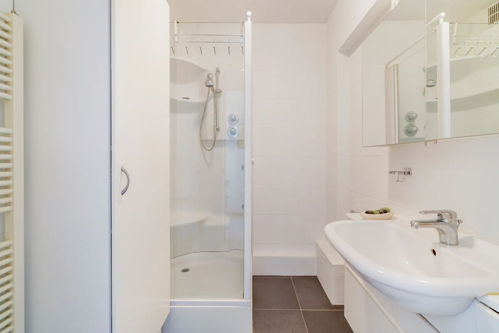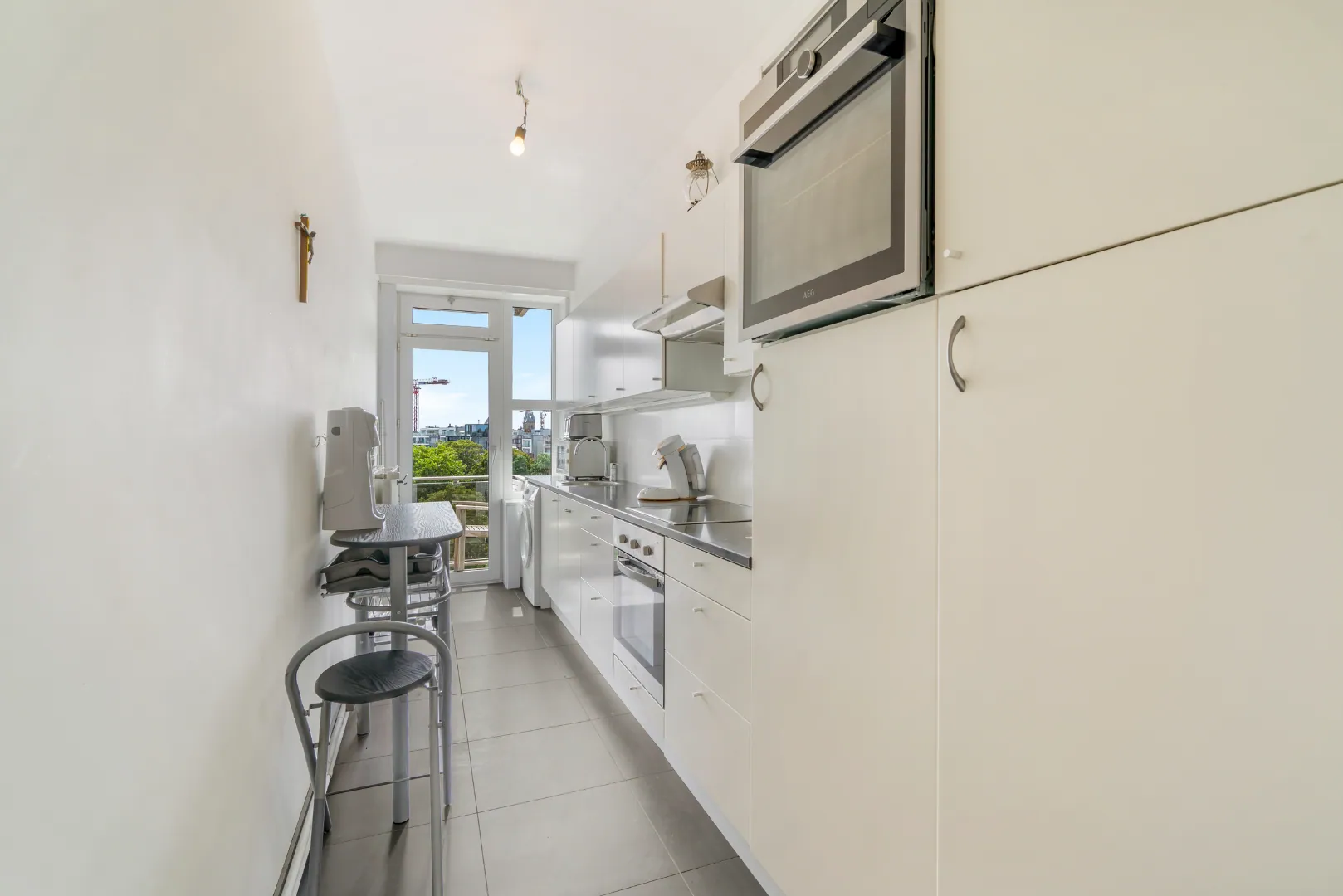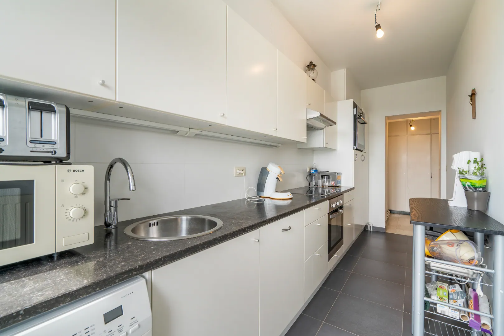 Het appartement is instapklaar en omvat: inkomhall, woonkamer met veel lichtinval, moderne ingerichte keuken met zonnig terrasje (Zuid-West gericht), toilet, badkamer met douche en wastafel, 2 slaapkamers met open zicht, waarvan 1 met terrasje, en een kelder.