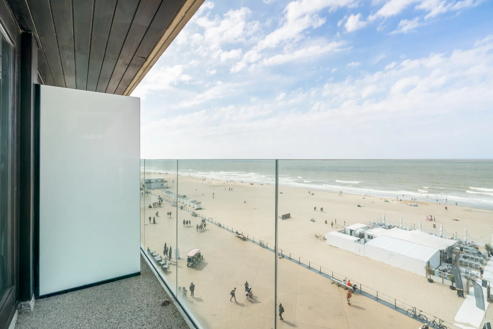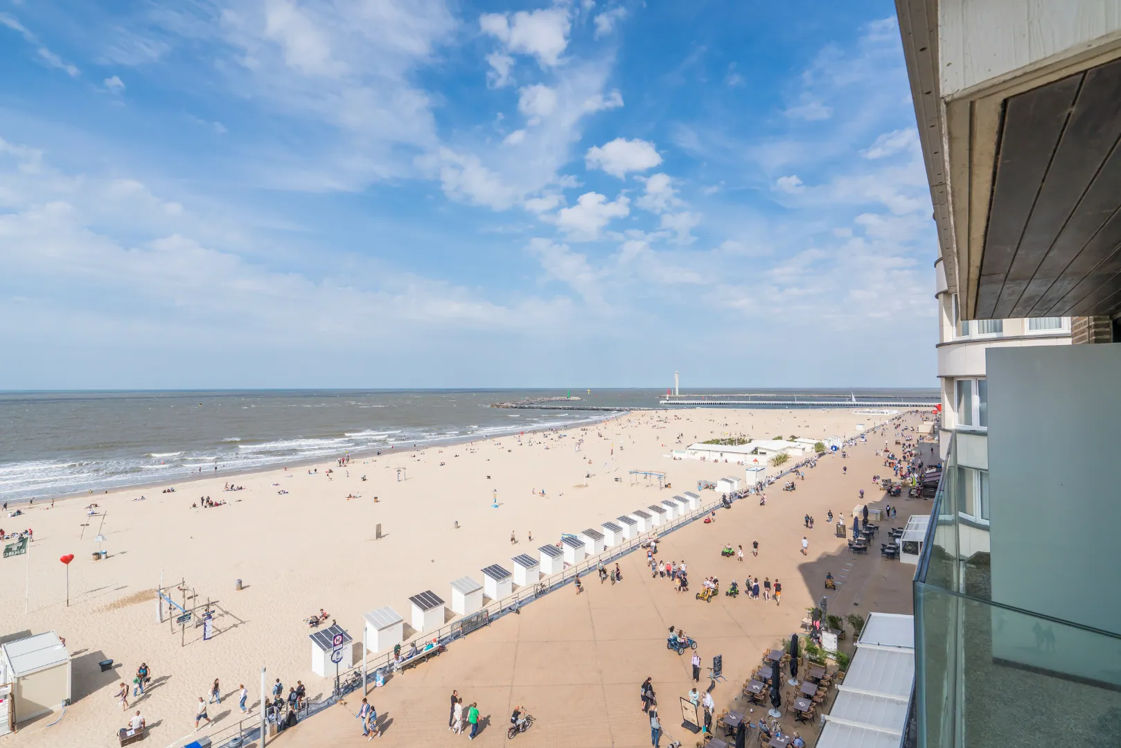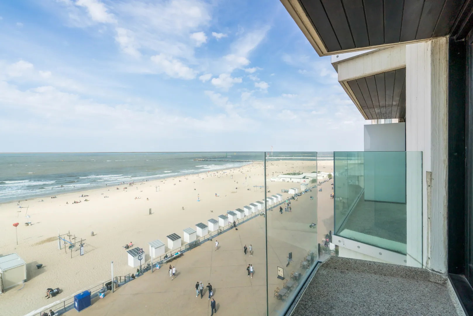 Het appartement bestaat uit een living met terras en frontaal zeezicht, badkamer met douche en wastafel, brede hall met ingemaakte kasten, 2 slaapkamers, en een kelder. Er is mogelijkheid om een nieuwe keuken te plaatsen in het appartement, en dit zonder ingrijpende werken. Dit appartement op de 6de verdieping heeft een bewoonbaar oppervlak van 61 m². Het gebouw is zeer goed onderhouden. Mogelijkheid om een staanplaats aan te kopen 650 meter van het appartement in parking Leopold. De vraagprijs voor de autostaanplaats bedraagt 30.000 euro.