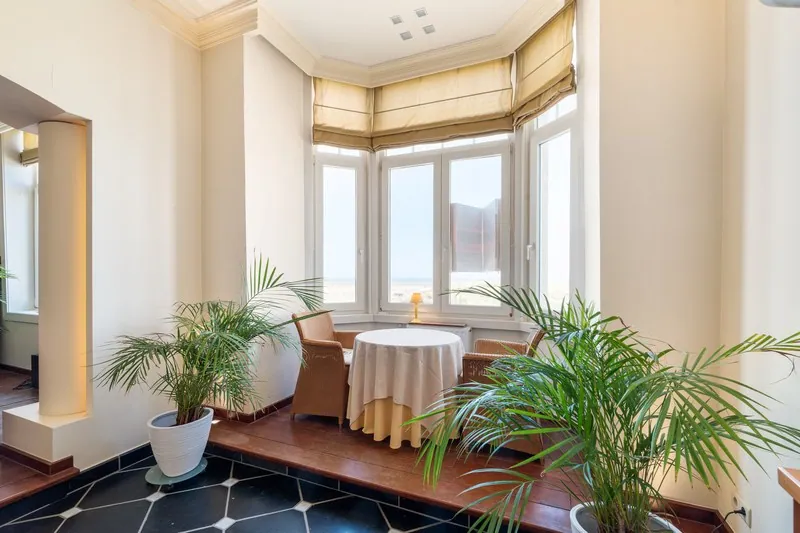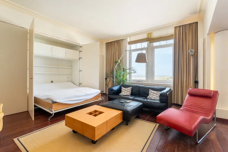 Op de eerste verdieping van het prestigieuze gebouw Residentie Palace bieden wij deze stijlvolle loft-studio te koop aan. Geniet van een subliem uitzicht op zee, duinen en de haven – een unieke locatie die rust en ruimte uitstraalt (gevel breedte van 9 meter).
