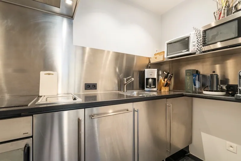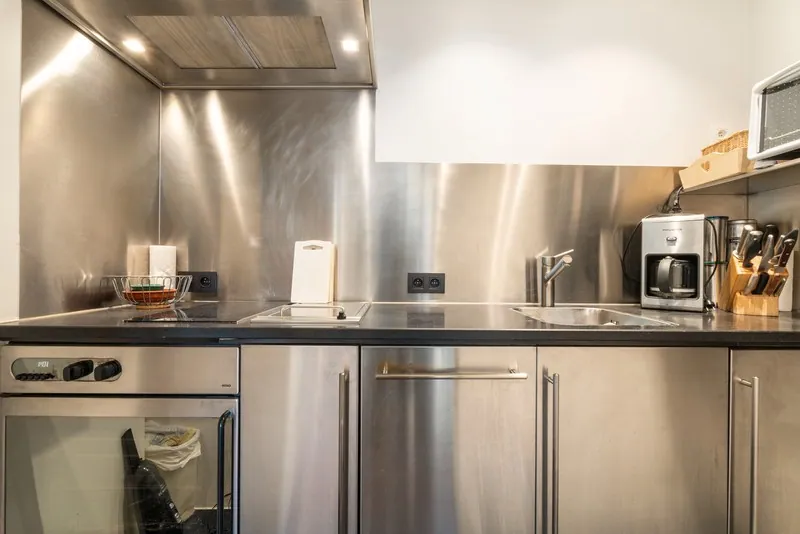 De volledige inrichting is inbegrepen in de prijs en bestaat uit kwalitatieve designmeubelen die perfect passen binnen de stijlvolle loft-uitstraling van de studio.